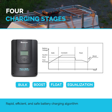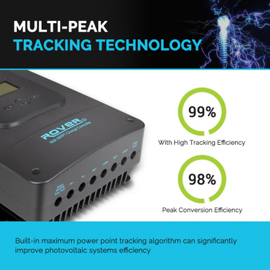 Il Rover 60A MPPT Solar Charge Controller è un regolatore di carica fotovoltaico avanzato, progettato per supportare impianti di grandi dimensioni a 12, 24, 36 e 48 volt con riconoscimento automatico del sistema (escluso litio).